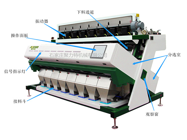 色選機根據(jù)物料光學特性的差異,利用光電探測技術將顆粒物料中的異色顆粒自動分揀出來。